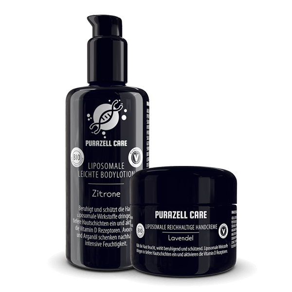 Vitamin D3 + K2 Kapseln kaufen mit gutem Gewissen: Premium-Qualität bei Purazell Die Versorgung mit ausreichend Vitamin D kann vor allem in den Herbst- und Wintermonaten schwerfallen – und die Folgen für unseren Körper und die Psyche sind dramatisch! Purazell Vitamin D3 5000 I.E. + K2 + A + Magnesium bietet jedoch besonders effektive Abhilfe: Hochwirksame Kombination: Unsere Vitamin D3 Kapseln enthalten lebenswichtige Vitamine und Mineralstoffe, die perfekt zusammenarbeiten. Sie sorgen für eine zielgerichtete Aufnahme und Verwertung des Sonnenvitamins in deinem Körper. Alles in einem Produkt: Komplex aus Nährstoffen, die für die Vitamin-D-Versorgung unbedingt notwendig sind. Alles in einer praktischen Kapsel, um Aufwand und Kosten zu reduzieren und Fehldosierungen zu verhindern. Unabhängig laborgeprüft: Wir lassen unsere Produkte regelmäßig von einem unabhängigen Labor überprüfen, um Belastungen auszuschließen und den Wirkstoffgehalt zu bestätigen. Die Testergebnisse sind jederzeit frei einsehbar. Frei von Zusatzstoffen: Purazell Vitamin D3 + K2 ist 100 % vegan und völlig frei von Gluten, Laktose, Farbstoffen, Konservierungsstoffen und Gentechnik. Welche Inhaltsstoffe stecken in unseren Vitamin D3 Kapseln? Die Bedeutung von Vitamin D Kapseln, besonders in den Herbst- und Wintermonaten, ist längst bekannt. Oft übersehen wird dabei jedoch, dass unsere Körper weitere Nährstoffe benötigt, um das Sonnenvitamin auch wirklich verwerten zu können! In unserem Vitamin-D3-Komplex findest du daher: Vitamin D3: In unseren Kapseln steckt die besonders wirkungsvolle Vitamin-Variante “D3”, die auch im Körper gebildet wird, wenn passendes Sonnenlicht auf unsere Haut trifft. Es trägt zu einer normalen Funktion des Immunsystems, der Erhaltung normaler Knochen und Zähne, normaler Muskelfunktion und der normalen Aufnahme und Verwertung von Kalzium und Phosphor bei. Außerdem hat es eine Funktion bei der Zellteilung. Vitamin K2 MK7: MK7 ist die wirksamste Form des Vitamins K2, das mit D3 besonders effektiv zusammenarbeitet. Gemeinsam sorgen sie dafür, dass Kalzium korrekt in die Knochen (und nicht in die Gefäße!) eingelagert wird. So trägt es zur Erhaltung normaler Knochen bei. Zudem unterstützt Vitamin K2 die normale Blutgerinnung. Vitamin A: Sowohl Vitamin A als auch Vitamin D3 gehören zu den fettlöslichen Vitaminen und erfüllen im Körper jeweils wichtige, sich ergänzende Aufgaben. Beide tragen zur normalen Funktion des Immunsystems bei und sind an Prozessen wie Zellteilung, Zellreifung und Geweberegeneration beteiligt. Vitamin A trägt zur Erhaltung normaler Haut und Sehkraft und einer normalen Funktion des Immunsystems bei. Zudem hat es eine Funktion bei der Zellspezialisierung. Magnesium: Unser Körper benötigt Magnesium für über 600 verschiedene enzymatische Prozesse und die Aktivierung von Vitamin D. Ein Magnesiummangel kann diese Umwandlung von Vitamin D in seine aktive Form hemmen. Mangelerscheinungen sind daher in unseren Breitengraden im Herbst und Winter sehr häufig anzutreffen. Bis zu 50 % der europäischen Bevölkerung sind in dieser Zeit unzureichend versorgt. Gleich mehrere Personengruppen sind besonders gefährdet: Menschen in nördlichen Breitengraden: Je weiter nördlich unser Aufenthaltsort ist, desto weniger nutzbare UV-B-Strahlung erhalten wir – besonders in den Wintermonaten. Wenig Sonnenlicht: Bei regelmäßigem Aufenthalt in Innenräumen, verhüllender Kleidung oder durch Sonnenschutzmittel kann das Sonnenlicht unsere Haut nicht erreichen. Übergewicht: Vitamin D wird in Fettgewebe gespeichert und ist dann nicht mehr verfügbar. Dies kann einen Mangel bei übergewichtigen Menschen begünstigen. Dunklere Hauttypen: Ein höherer Melaningehalt sorgt für einen dunkleren Hauttyp und verringert gleichzeitig die Aufnahmerate für Vitamin D. Alter: Auch mit steigendem Alter sinkt die natürliche Fähigkeit unserer Haut, das Sonnenlicht effektiv für die Bildung von aktivem Vitamin D zu nutzen. Vegane und vegetarische Ernährung: Ein kleiner Teil unserer Versorgung erfolgt über tierische Lebensmittel. Ein Verzicht kann die Vitamin-D-Versorgung erschweren. Stoffwechselerkrankungen: Einige Krankheiten, wie Zöliakie oder Morbus Crohn, können unsere Aufnahmefähigkeit reduzieren und die Vitaminversorgung erschweren. Nieren- und Lebererkrankungen: Der Verwertungsprozess (Umwandlung, Stoffwechsel) von Vitamin D ist bei einigen Erkrankungen beeinträchtigt. Medikamente: Epilepsie-Medikamente, Kortikosteroide und andere Präparate können unsere Vitamin-D-Versorgung ebenfalls hemmen. Was passiert bei Vitamin-D-Mangel? Leider lässt sich die Mehrzahl dieser Risikofaktoren kaum beeinflussen. Ohne entsprechende Gegenmaßnahmen kommt es zu einer Unterversorgung, die unangenehme und gefährliche Folgen haben kann: Knochen: Vitamin-D-Mangel kann für eine verringerte Knochendichte sorgen und so unter anderem Brüche begünstigen. Besonders bei Kindern besteht zudem die Gefahr von weichen Knochen, Verformungen und Wachstumsstörungen (Rachitis). Muskeln: Ohne ausreichende Vitamin-D-Versorgung kann es zu Muskelschwäche kommen. Sie stellt bei älteren Menschen ein hohes Risiko für Stürze und einen unsicheren Gang dar. Immunsystem: Unser Immunsystem benötigt ausreichende Mengen des Sonnenvitamins, um Krankheitserreger – insbesondere solche, die zu Erkältungen und anderen Atemwegserkrankungen führen– abzuwehren. Psyche: Ein Vitamin-D-Mangel steht mit Depressionen und geistigen Beeinträchtigungen in Verbindung Energie: Erschöpfung, Müdigkeit und Konzentrationsprobleme sind häufige Folgen einer Unterversorgung. Herz-Kreislauf-Erkrankungen: Eine unzureichende Vitamin-D-Versorgung erhöht das Risiko für Herz-Kreislauf-Erkrankungen wie Bluthochdruck oder Arteriosklerose. Da die Folgen ernstzunehmen, die Versorgung aber schwierig ist, haben sich Vitamin D Kapseln als wichtiges Hilfsmittel etabliert. Die Einnahme wird von Ernährungsverbänden für Mens