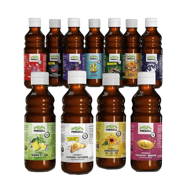 Wirkung und Vorteile von Alpha-Liponsäure Alpha-Liponsäure ist ein wichtiges Coenzym, das in sämtlichen Zellen unseres Körpers vorkommt. Die schwefelhaltige Fettsäure gilt als starkes Antioxidans. Sie ist sowohl fett- als auch wasserlöslich und kann sogar die Blut-Hirn-Schranke passieren. Was ist Alpha-Liponsäure? Die Alpha-Liponsäure zählt zu den schwefelhaltigen Fettsäuren und löst sich daher sowohl in Wasser als auch in Fett. Diese besondere Beschaffenheit erlaubt es ihr, sogar die Blut-Hirn-Schranke zu überwinden. Wir finden sie in ihrer natürlichen Form als Coenzym in den Mitochondrien unserer Zellen. Alpha-Liponsäure gehört zu den Antioxidantien - Stoffe, welche die Fähigkeit besitzen, Elektronen abzugeben und dadurch freie Radikale (“reaktive Sauerstoffspezies”) unschädlich zu machen. Eine erhöhte Menge solcher freier Radikale werden mit Zellschäden und Krankheiten in Verbindung gebracht. In Deutschland ist der Wirkstoff Alpha-Liponsäure sogar zur Behandlung von Missempfindungen bei diabetischer Polyneuropathie zugelassen, einer Folgeerkrankung, die c.a. 60 % der Diabetiker betrifft. Zu den Symptomen zählen beispielsweise Schmerzen, Brennen und Taubheitsempfindungen, denn ein dauerhaft erhöhter Blutzuckerspiegel kann zu Nervenschädigungen führen. Bestimmte Personengruppen, wie Raucher, Sportler und Menschen mit Erkrankungen, wie Diabetes, Alzheimer oder Multipler Sklerose, können einen erhöhten Bedarf haben. Bei längerfristiger Einnahme wird empfohlen, auf einen ausreichend hohen Vitamin B7 (Biotin) – Spiegel zu achten. Dabei kann dich z.B. die Kombination mit unserem liposomalen B-Komplex oder unserem organischen Vitamin B-Komplex aus Quinoasprossen unterstützen. Was sind Liposomen? Liposomen sind kleine Einheiten aus Phospholipiden, die für Transportsysteme im Körper verwendet werden können. Die zu transportierenden Nährstoffe werden dazu in Membranhüllen aus einer Phospholipid-Doppelschicht eingebettet und so vor Schäden durch Magensäure oder Speichel bewahrt. Sie schützen so vor einer verfrühten Auflösung und fördern die Aufnahme des Wirkstoffes im Darm, um die Bioverfügbarkeit zu maximieren. Herkömmliche Nahrungsergänzungsmittel haben einen Verlust von bis zu 90 %, welcher durch die liposomale Verkapselung deutlich reduziert wird. Liposomal eingekapselte Stoffe gelangen, geschützt durch die Doppellipidschicht, direkt in die Darmzellen und von dort in den Blutkreislauf. Diese Art des Transports bewahrt die Alpha-Liponsäure vor negativen Einflüssen, wie etwa Kaffeekonsum, und sorgt so für eine höhere Bioverfügbarkeit im eigenen Körper. Dadurch steigern sie nicht nur die Verfügbarkeit, sondern schützen auch den Stoff, den sie umhüllen. Insbesondere die saure Umgebung des Magens könnte sonst schädigend auf die Alpha-Liponsäure einwirken und ihre Effektivität reduzieren. Wer liposomale Alpha-Liponsäure kaufen möchte, wird früher oder später auf scheinbar besonders günstige “liposomale Pulver” stoßen. Dabei ist zu beachten, dass Liposomen aufgrund ihrer Struktur ausschließlich in Flüssigkeit bestehen können. Pulverprodukte können daher nicht die hohe Bioverfügbarkeit von liposomalen Säften erzielen. “Liposomale” Pulver erreichen nicht annähernd die Bioverfügbarkeit von flüssigen, liposomalen Produkten und liefern sogar häufig weniger Wirkstoff, als einfachste Nahrungsergänzungsmittel aus dem Supermarkt, wie eine Studie eindrucksvoll bewiesen hat. Daher kannst du bei uns ausschließlich flüssige, aus hochwertigen Zutaten hergestellte, liposomale Alpha-Liponsäure kaufen. Liposomale Alpha-Liponsäure kaufen mit gutem Gewissen: Qualität und Nachhaltigkeit bei Purazell Uns liegt Nachhaltigkeit am Herzen! Wir nutzen für unsere Produkte nachhaltige Materialien, wo immer es möglich ist. Daher kommt für unsere liposomale Alpha-Liponsäure statt Plastik eine Braunglasflasche mit einem Volumen von 300 ml zum Einsatz. Wenn du unsere liposomale Alpha-Liponsäure kaufst, profitierst du von einer Reihe von Vorteilen: 100 % vegan Hohe Bioverfügbarkeit durch 100 % liposomale UmkapselungKeine GentechnikKeine zusätzlichen FarbstoffeFlasche bietet zusätzlichen Schutz vor übermäßigem Lichteinfluss Minimierung von Plastik Die Gläser können wiederverwendet und vielseitig im Haushalt eingesetzt werden Unsere Glasflaschen sind hitzestabil und leicht zu reinigen Lebensmittelgeeignet und ohne giftige Absonderungen Glas ist zu 100 % recycelbar Wir nutzen für unsere Produkte natürliche Inhaltsstoffe und verzichten auf zusätzliche Konservierungsmittel. Umstrittene Stoffe, wie Ethanol oder Kaliumsorbat, werden leider immer noch zur Herstellung von minderwertigen Nahrungsergänzungsmitteln verwendet, obwohl sie im Verdacht stehen, gesundheitsgefährdende Wirkungen zu haben. Tatsächlich wurden schädliche Effekte bereits in ersten Studien an Zellkulturen nachgewiesen. Bei unserer liposomalen Alpha-Liponsäure kannst du sicher sein, ein Produkt frei von zusätzlichen oder gar gefährlichen Farb- und Konservierungsstoffe zu erwerben. Wir nutzen ausschließlich natürlichen Sanddornextrakt, um die Haltbarkeit unserer Säfte zu erhöhen. Auch Gentechnik suchst du bei uns vergeblich! Dosierung und Verzehrempfehlung Eine Flasche unsere liposomale Alpha-Liponsäure enthält 300 ml. Die empfohlene Tagesdosierung liegt bei 10 ml und reicht somit für 30 Anwendungen. Für die genaue Portionierung ist ein Messbecher im Lieferumfang enthalten. Die empfohlene Tagesdosis von 8 ml enthält 1.300 mg Phospholipide, 515 mg Sanddornextrakt, 495 mg Vitamin C, 110 mg R-Alpha-Liponsäure, 3 mg Resveratrol. Optimal aufgenommen wird das Supplement morgens nach einer Mahlzeit. Idealerweise solltest du unsere liposomale Alpha-Liponsäure mit Wasser, Saft oder anderen Flüssigkeiten einnehmen. Sehr kalte oder heiße Getränken sollten jedoch vermieden werden, da sie die Stabilität der Liposomen negativ beeinflussen können. Nach dem Anb