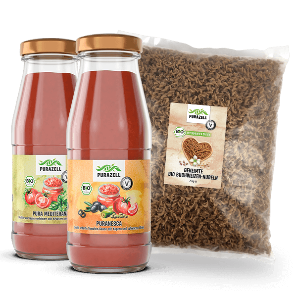 In unseren Purameals steckt die Kraft aus gekeimten Bio-Saaten in einer leckeren veganen All-In-One Mahlzeit in Rohkostqualität. Du sparst Zeit und bekommst eine Extraportion schnell verfügbarer Nährstoffe – auch unterwegs oder wenn es mal schnell gehen muss. Sie enthalten mehr Omega-3 als Omega-6 Fettsäuren, kommen ganz ohne künstlichen Zucker, Öle, Proteinisolate oder Füllstoffe aus und werden im Herstellungsprozess nicht erhitzt. Durch den natürlichen Zutatenmix aus gekeimten Saaten ist dieser Shake besonders gut verdaulich. Und wie immer: laborgeprüfte Qualität von Purazell. So einfach bereitest du es zu C.a. 80 g Purameal in 500 ml Pflanzendrink oder Wasser geben, 10 Sekunden kräftig schütteln, ein paar Minuten stehenlassen, noch einmal schütteln und genießen. Mit unseren Purameals sparst du Zeit, bekommst eine Extraportion wertvoller Nährstoffe aus gekeimten Saaten und kannst dich ohne großen Aufwand vollwertig und vegan ernähren – auch unterwegs oder wenn es mal schnell gehen muss.