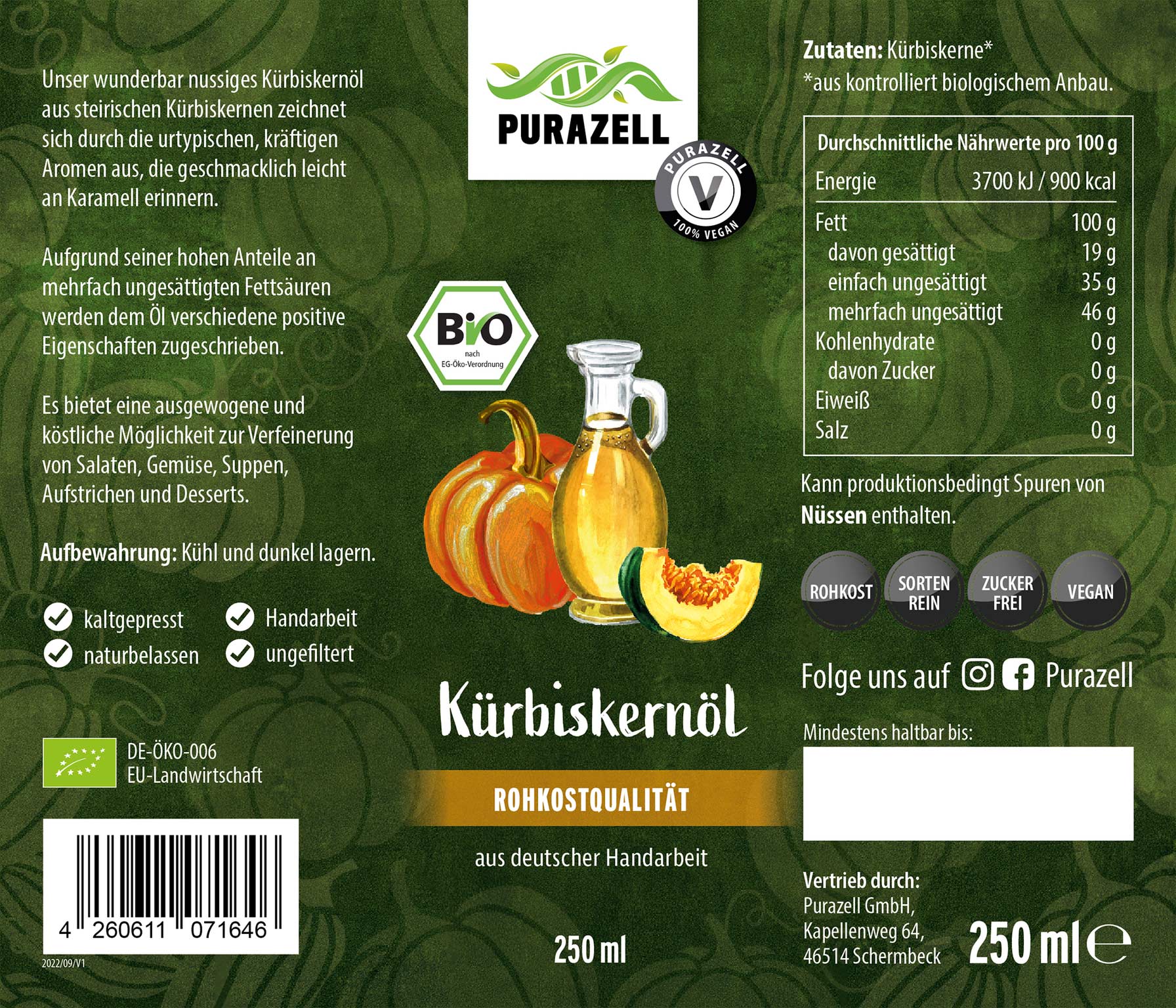 Speiseöl aus 100 % Kürbiskernen. Die urtypischen, kräftigen Aromen erinnern leicht an Karamell und machen das vielfältig einsetzbare Öl zu einer ganz besonderen Zutat.