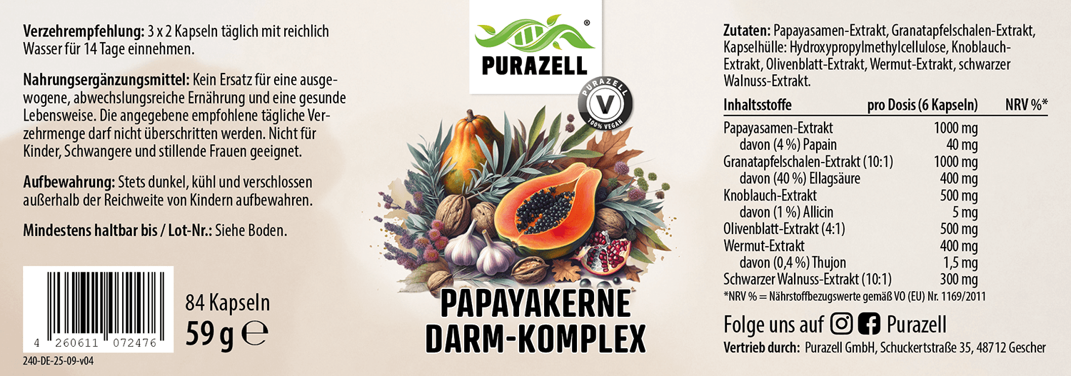 Purazell Papayakerne Darm-Komplex: Von unabhängigem Labor geprüfte Qualität