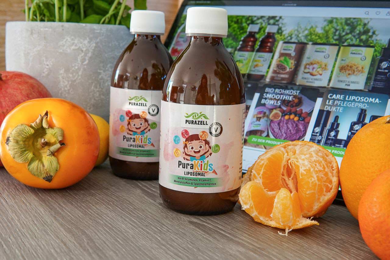 PuraKids Liposomal mit B-Vitaminen, Vitamin C, Mineralstoffen & Spurenelementen soll eine gesunde Lebensweise auf eine einfache und leckere Art ergänzen.