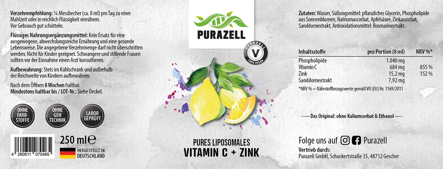 Produktinformationen "Pures Liposomales Vitamin C + Zink"