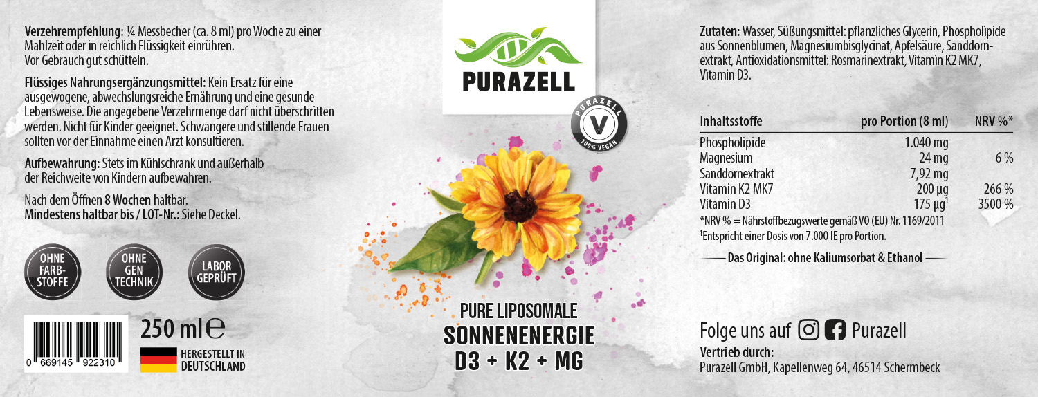 Produktinformationen "Pures Liposomales Vitamin D3 + K2 + MG"