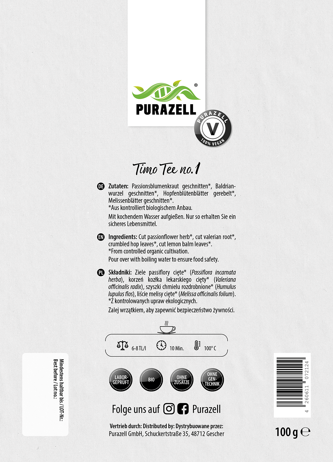 - Frei von Zusatzstoffen: Purazell Baldriantee ist 100 % vegan und frei von Gluten, Laktose, Farbstoffen, Konservierungsstoffen und Gentechnik.