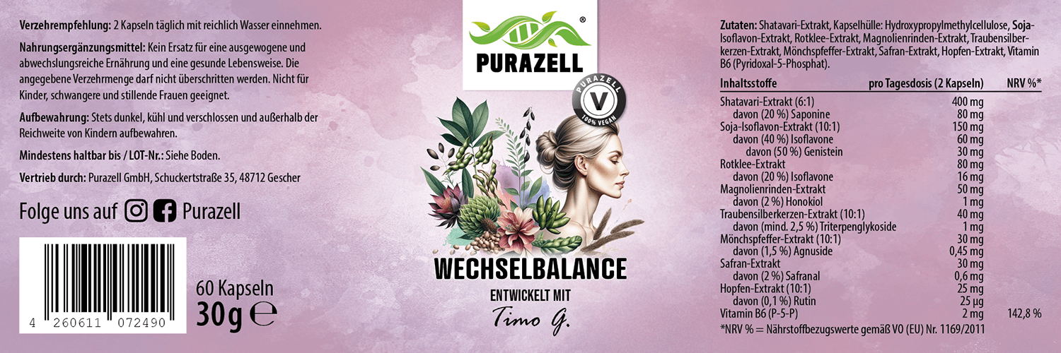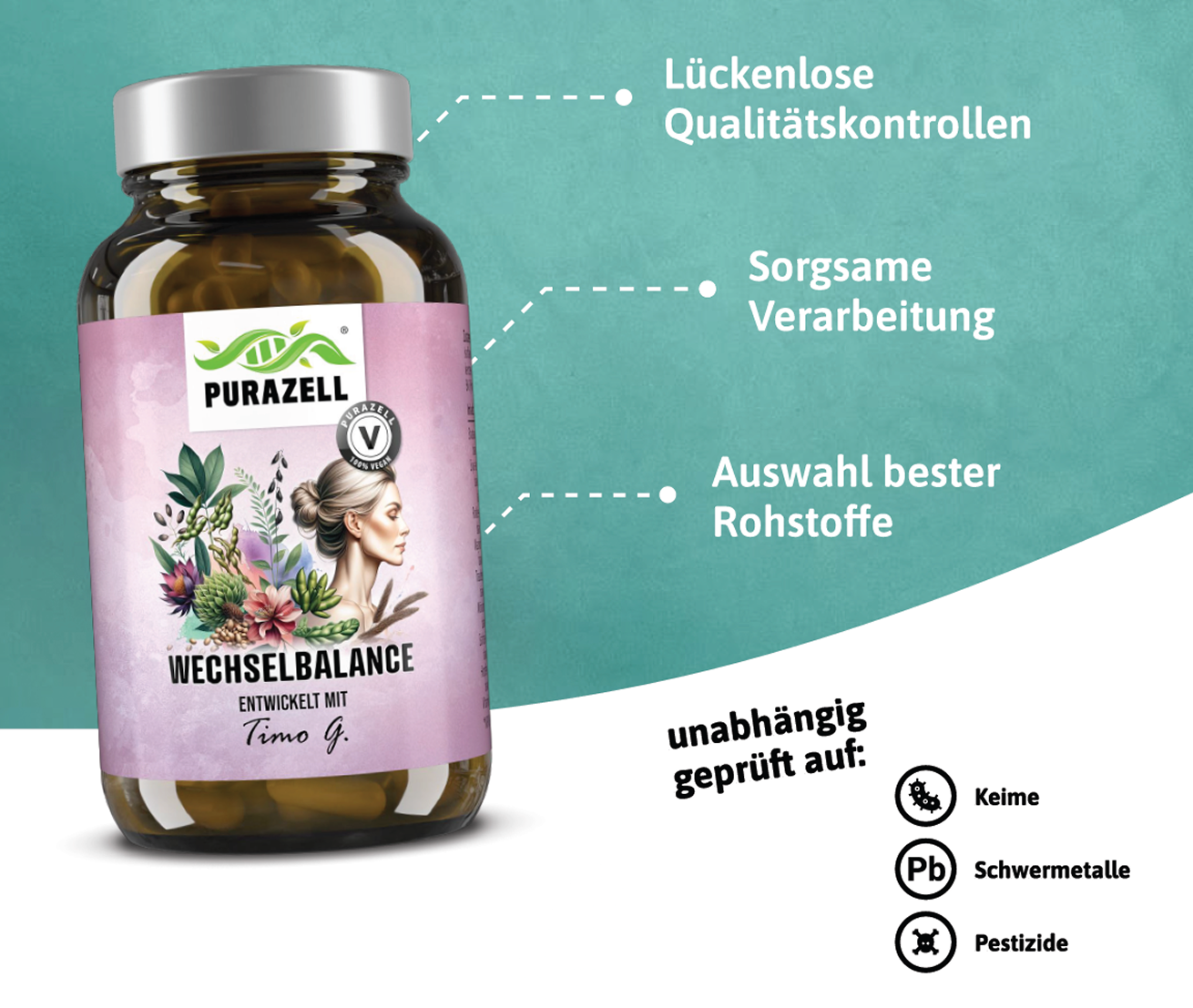 <div>Purazell Wechselbalance wurde zusammen mit dem Wildkräuterexperten Timo G. anhand aktueller wissenschaftlicher Erkenntnisse gezielt für die optimale Versorgung während dieser Phase entwickelt.</div>